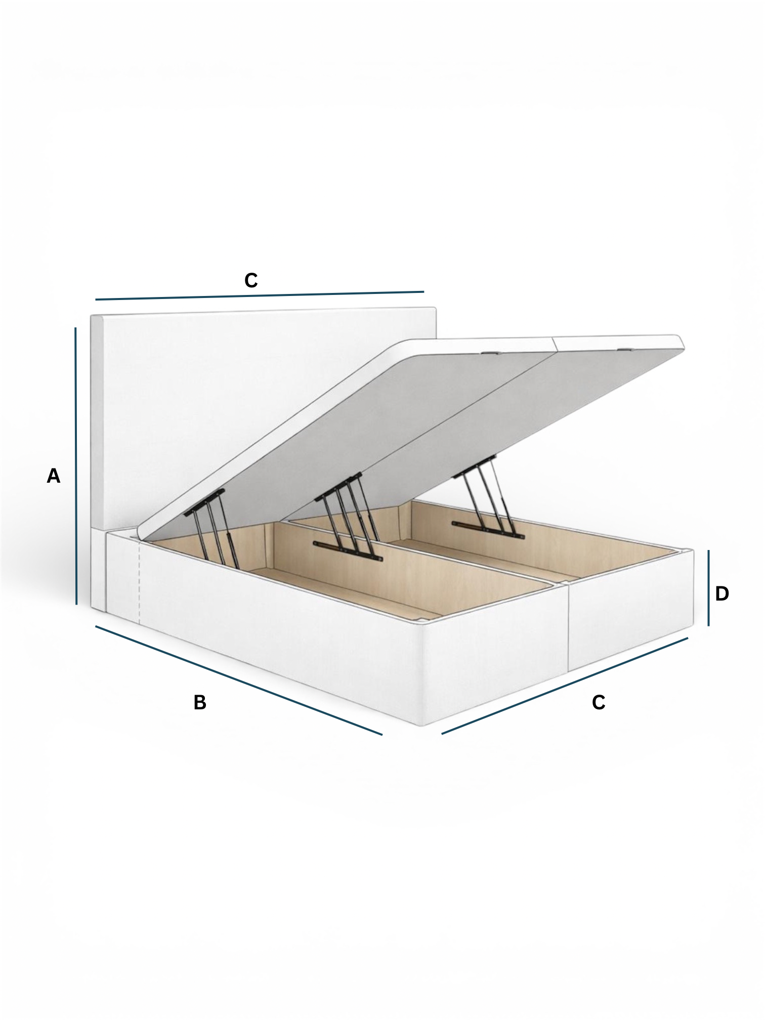 | Size | A - Headboard Height | B - Length | C- Width | D - Base Height |